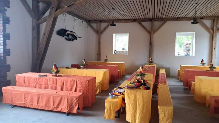 Für das leibliche Wohl, mit Speisen und Getränken war hervorragend gesorgt. Nach einem üppigen Frühstück, fand in der Mittagspause jede/r eine vielfältige Auswahl an Grillfleisch, Salaten, sowie Kuchen und Gebäck.