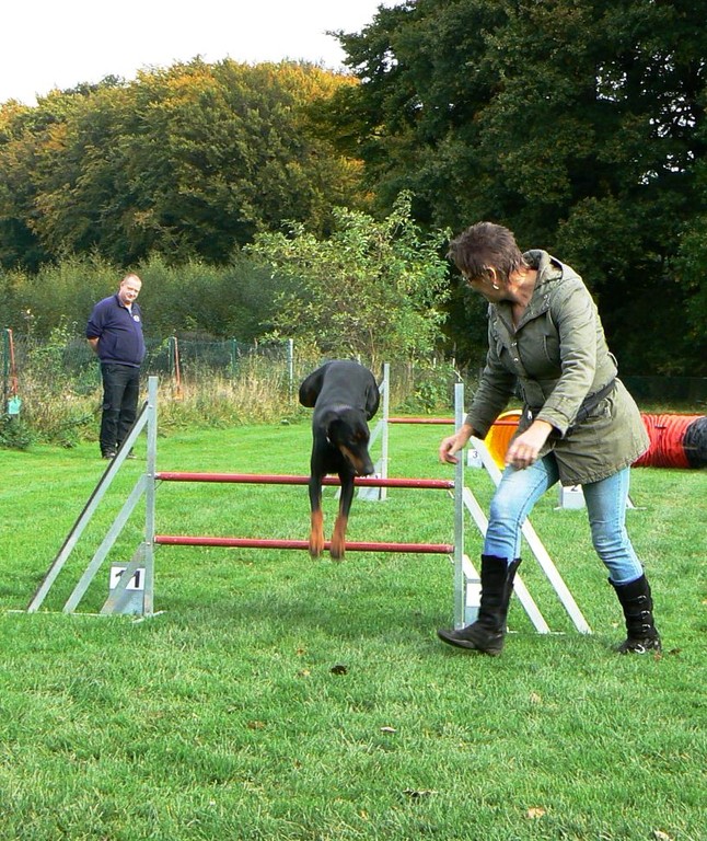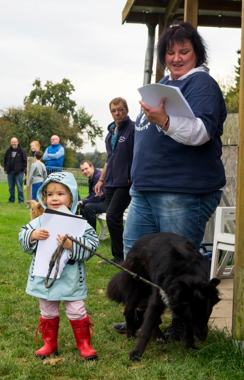 Das war das Motto eines internen Spaß-Agility-Turniers unserer Baumberger-Gruppe. Und Freude, Spannung, Unterhaltung kamen an diesem Nachmittag wirklich nicht zu kurz. Jeder, der in irgendeiner Form schon mal „Agility- Luft „ geschnuppert hatte, durfte antreten. Dieses Angebot wurde somit auch von vielen Mitgliedern wahrgenommen. Ob Anfänger, Turnierläufer, jeder war begeistert dabei. Unsere jüngste kleine „Dame“ mit gerade mal zweieinhalb Jahren überraschte alle Zuschauer und Beifall brauste auf, als Saskia stolz ihre Urkunde entgegen nahm. Je nach Leistungsstand hatte unser Richter Stefan die Parcours mit viel Geschick und Besonnenheit aufgebaut. Verlieren konnte keiner, aber an Erfahrung gewinnen. Bei der abschließenden Siegerehrung gab es für jeden Läufer/in eine Urkunde und die Fellnasen freuten sich über „Leckerchen“. Toll war´s und eine Wiederholung lässt sich nicht umgehen. Dank an alle, die diese Veranstaltung organisiert und unterstützt haben.
